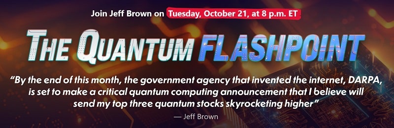 Tech legend Jeff Brown hosts The Quantum Flashpoint event on Oct 21, 2025, at 8 p.m. ET, unveiling top 3 quantum computing stocks poised for explosive gains amid DARPA’s pivotal announcement. Don’t miss this second AI-like revolution—RSVP now for free insights and bonus reports.